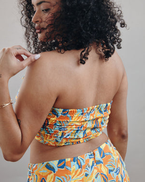 Turn heads in this halter-style crop top, featuring a daring wrap-tie silhouette and a chic golden ring focal point that radiates summer energy. It’s the perfect piece for soaking up the sun or dancing through a festival, especially when paired with your favorite high-waisted linen pants and some layered metallic necklaces.