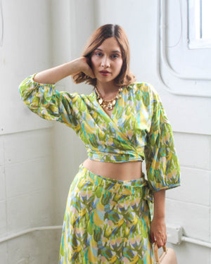 Wrap yourself in effortless charm with this casual top, featuring a flattering wrap front, playful tie straps, and dreamy balloon sleeves with comfy elasticated cuffs. It’s laid-back, a little flirty, and ready for anything.