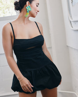 Flirty meets chic in this mini dress, featuring a sweetheart neckline, adjustable spaghetti straps, and a statement balloon hem that adds just the right amount of drama. Zip it up, throw on some strappy heels, and get ready to turn every sidewalk into your personal runway!