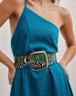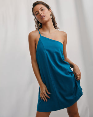 Step out in effortless chic with this one-shoulder mini dress featuring an adjustable spaghetti strap and a snug elasticated neckline. The breezy A-line silhouette keeps it fun, flirty, and totally twirl-worthy!
