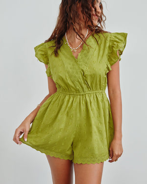 Playful, polished, and just the right amount of flirty—this one-piece is your shortcut to effortless summer style. With delicate embroidery and soft flutter sleeves, it’s made for brunches, beach dates, and everything in between.