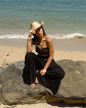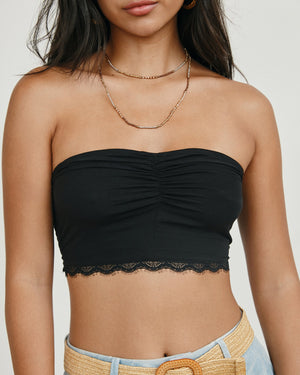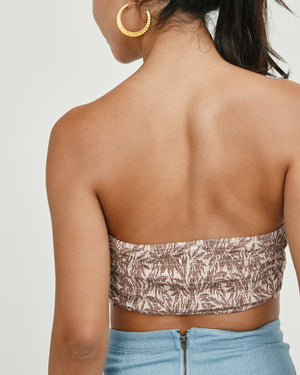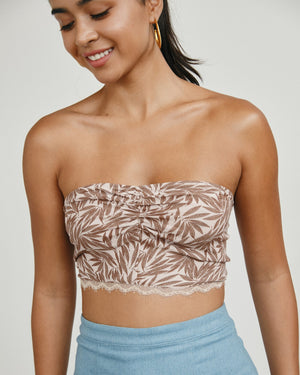 Available in plain or printed, this bandeau crop top is elevated with a sweetheart neckline and a scallop hemline.