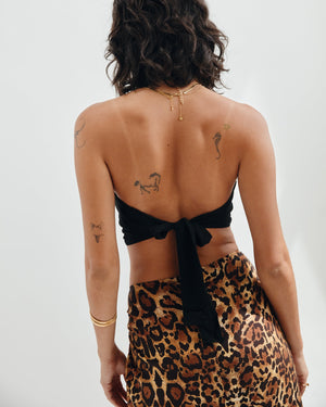 Turn up the charm with this chic bandeau crop top featuring an eye-catching flower applique right in the center! With tie-back straps for a custom fit, this piece is perfect for sunny days and nights out - a flirty essential that blooms with style!
