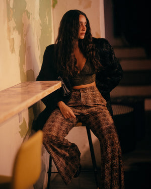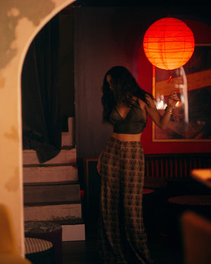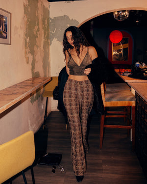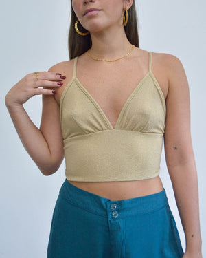 This simple yet stylish crop top is crafted from a stretchy, shiny fabric that offers both comfort and a touch of glamour. The material hugs the body for a flattering, form-fitting look, while its soft stretch ensures a comfortable fit that moves with you. The sleek, reflective finish adds a modern edge, making it a versatile piece that can easily be dressed up or down. Perfect for pairing with high-waisted jeans, skirts, or layered under a jacket, this crop top brings a bold, trendy look to any wardrobe.