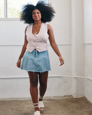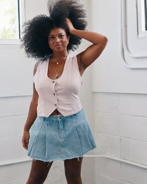 Sharp meets chic in this vest top, featuring a bold deep V-neck, a sleek button-down front, and stylish front slit pockets for that tailored touch. Cinch the adjustable back belt for a perfect fit, and pair it with wide-leg trousers for an effortlessly powerful look!