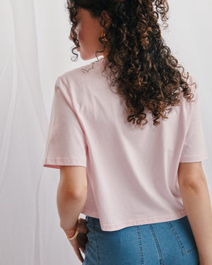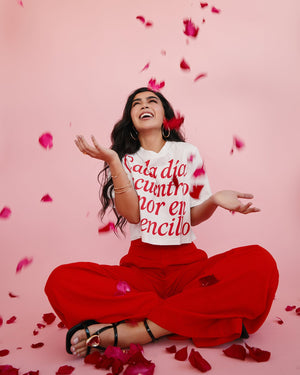 Say it loud and wear it proud — this chic crop T-shirt brings bold lettering and feel-good vibes to your everyday look. With its relaxed fit and cropped cut, it’s perfect for pairing with high-waisted bottoms and a confident attitude.