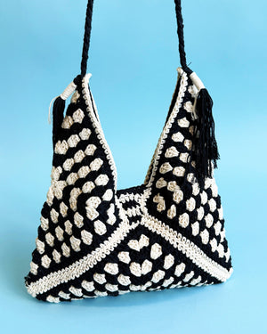 Hand-crocheted with a chic checker pattern and tassel details, this crochet purse brings effortless boho charm to any outfit. Lightweight yet roomy, it’s the perfect grab-and-go accessory for beach days, brunch dates, and everything in between.