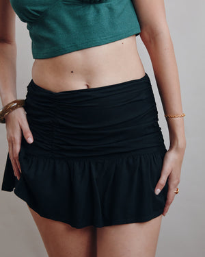 This playful mini skirt brings instant personality to your outfit with its ruched detail and flirty frilled hem. Easy to dress up or down, it’s the perfect piece for sunny days, weekend plans, and everything in between.