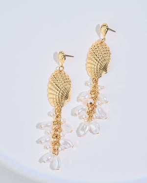 Make a splash with these seashell dangle earrings — where beachy charm meets elegant shimmer. Adorned with cascading pearls, they’re basically a tropical vacation… for your ears!