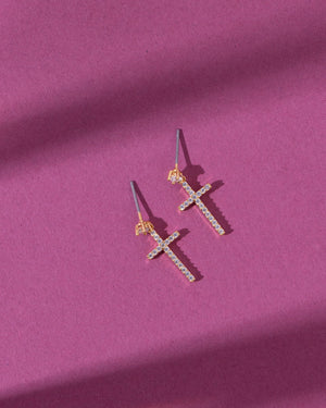 Sleek and sparkling, these 18K gold-plated drop earrings feature delicate cross silhouettes accented with shimmering stones for just the right amount of shine. Lightweight and eye-catching, they’re the perfect little statement to elevate everything from everyday denim to evening looks.