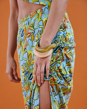Turn up the heat with this sleek one-shoulder midi dress featuring a daring side cutout and flattering ruched detailing. Equal parts sultry and sophisticated, it’s made to make an entrance wherever you go.