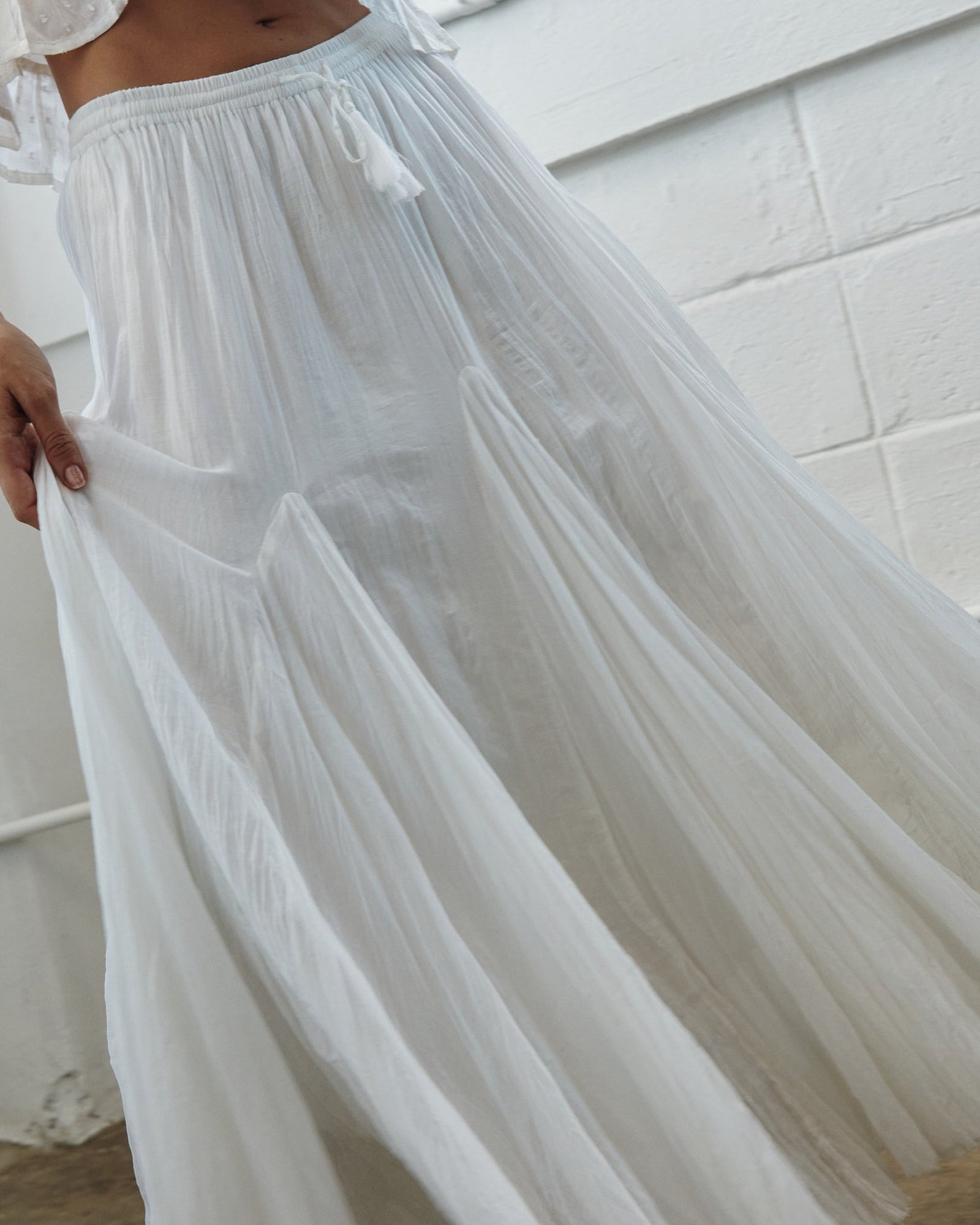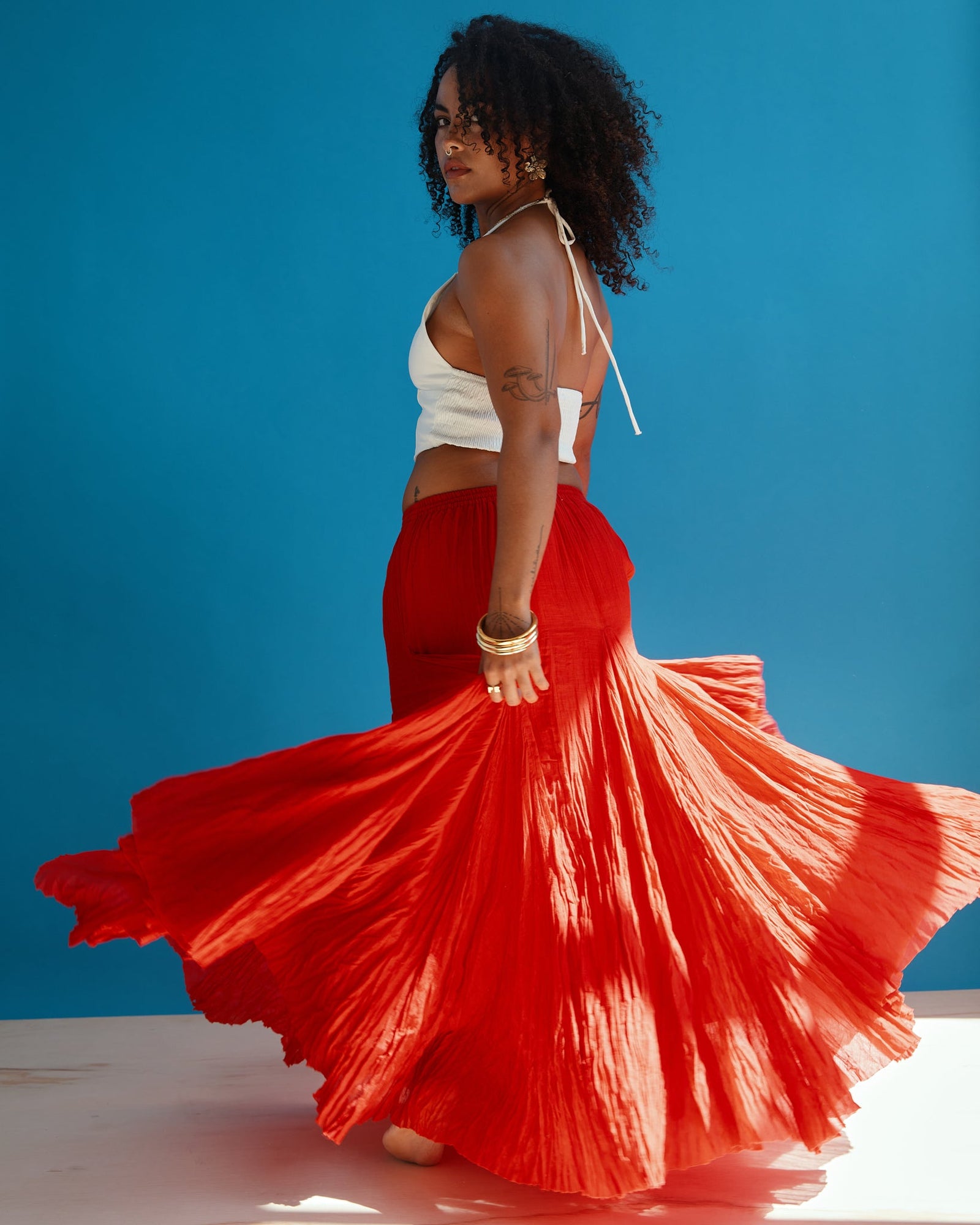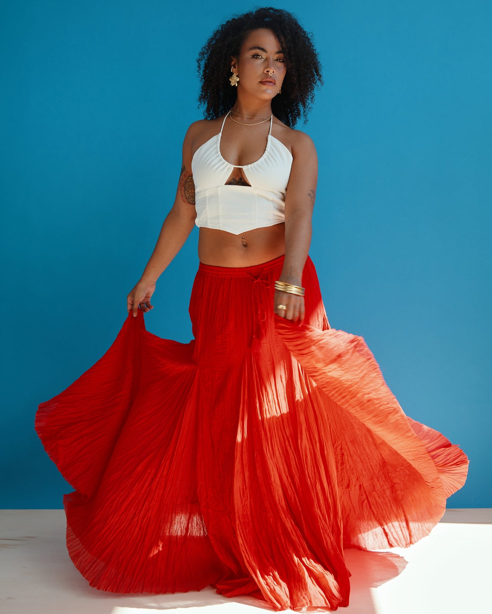 La Kercia Maxi Skirt está de vuelta Diseñada en 100% algodón, es tu pieza clave para un look effortless y boho.Disponible solo online.