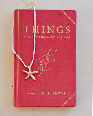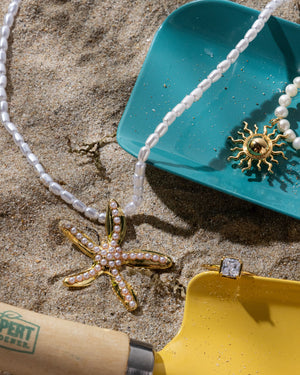 Channel effortless beach glam with this statement pendant necklace, featuring glossy acrylic pearl beads and a dazzling starfish charm. Finished in radiant gold tones, it’s the perfect mix of coastal cool and playful elegance for sunny days and sunset nights.