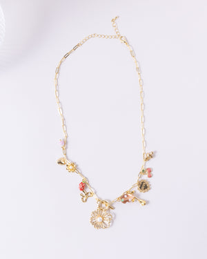 Add a dash of playful whimsy to your jewelry collection with this charming link necklace, featuring a delightful medley of colorful fruit, flower, and heart-shaped charms. Dipped in a radiant 16K gold plating, this eye-catching piece is the ultimate conversation starter that brings a fun, "main character" energy to any outfit!