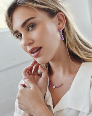 Make a statement with these stunning 16K gold-plated hoops, adorned with glossy glass beads for playful elegance. Perfect for adding a pop of color and bold style to any outfit!