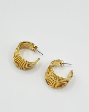Turn up the shine with these bold layered hoop earrings, crafted from 18K gold plated brass for a luxe, head-turning finish. Featuring a secure push-back closure, they’re the perfect mix of modern edge and timeless glam.