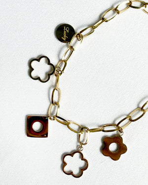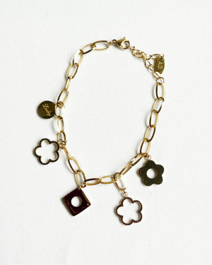 This playful charm bracelet brings the perfect mix of retro and modern. Linked with bold gold chain and finished with flower and geometric charms, it adds a fun twist to your stack—or looks just as cute on its own.