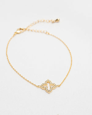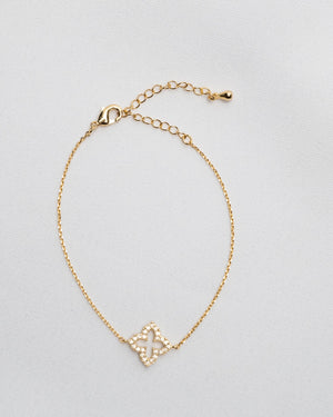 Delicate yet dazzling, this chain bracelet features a dainty silhouette and a sparkling four-petal clover charm studded with cubic zirconia for just the right touch of luck and luxe. Perfect for stacking or wearing solo, it’s your everyday sparkle with a whimsical twist.