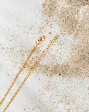 Delicate and dreamy, this dainty chain necklace features a charming shell pendant glowing in radiant 18K gold plating. Light, beachy, and effortlessly chic, it’s the perfect little treasure to layer up or wear solo for a subtle seaside sparkle.
