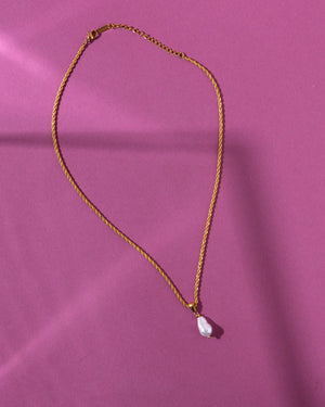 This 18K gold-plated necklace brings sleek elegance with its delicate rope chain and unique shell pendant. It’s the perfect everyday piece for adding a touch of quiet luxury.