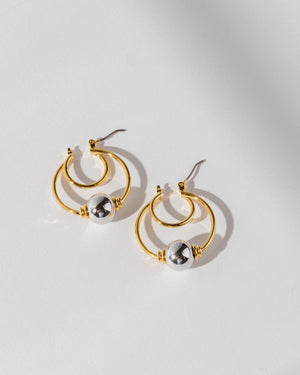 Turn heads with these stunning 18K gold-plated brass hoops, featuring a bold silver bead that adds a modern twist to a timeless classic. They're the perfect accessory for a night out or just adding a touch of playful elegance to your everyday look.
