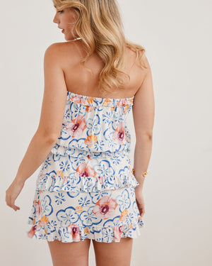 Float into warm weather with ease in this playful strapless dress. Designed in a lively floral print with tiered ruffle layers, it brings effortless charm and breezy movement to sunny days. The elasticized neckline and waist keep things comfy—just add sandals and go.