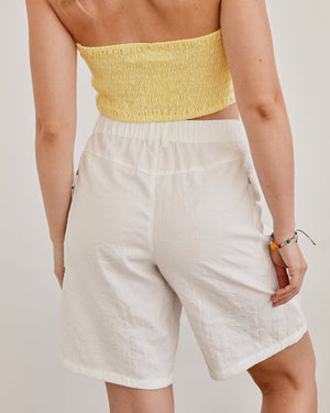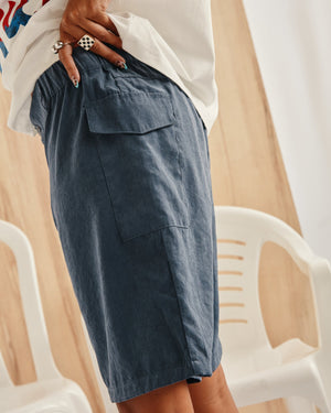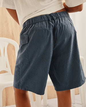 Polished ease meets laid-back comfort in these versatile bermuda shorts. Designed with a flat front, tailored waistband, and elastic back panel, they blend structure with relaxed wearability. Clean lines and a straight silhouette give them a refined edge that transitions effortlessly from lounge to street.