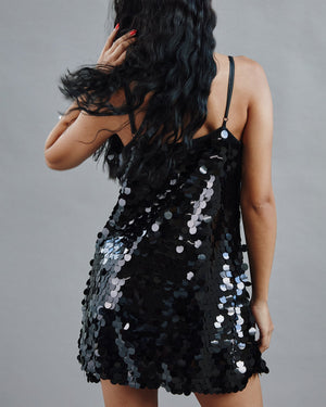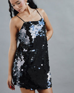 This mini dress brings full disco-ball-but-make-it-chic energy with its square neckline and all-over sequins. Flirty, fun, and guaranteed to catch the light — and maybe a few hearts too.