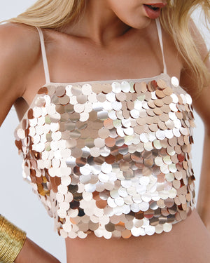 Bring on the sparkle with this sequin-covered crop top featuring a chic square neck and delicate spaghetti straps. Perfect for a night out or festive fun, it’s your go-to piece for instant glam and unstoppable shine.