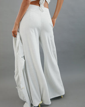 Breeze through your day in these wide-leg pants, crafted from a lightweight blend of viscose and linen. With a high-rise waist, side pockets, and a sleek back zipper, their flared silhouette delivers effortless elegance and comfort.