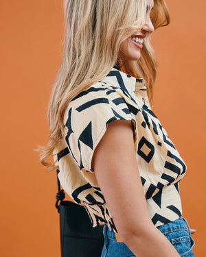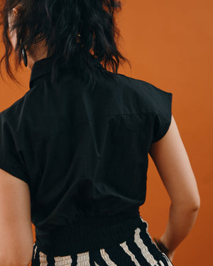 Polished meets style in this chic shirt top featuring a sharp pointed collar, extended sleeves, and elegant front pleats. Finished with a button-down front and a wide fitted waist, it’s your power move for effortlessly elevated style!