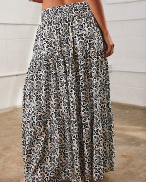 Flowy and full of charm, this maxi skirt features a vibrant mixed print with a comfy smocked waistband for the perfect fit. Its breezy silhouette makes it an effortless pick for sunny days, weekend strolls, or relaxed getaways.