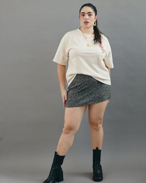 Bring on the good vibes with this oversized graphic tee that’s as bold as your attitude. Comfy, carefree, and effortlessly cool — it’s made for those who like to wear their energy loud and proud.