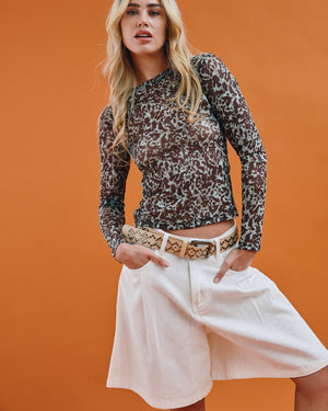 Unleash your wild side with this sheer animal print top that’s equal parts fierce and flirty. With its fitted silhouette and long sleeves, it’s the perfect layering piece to take any outfit from tame to untamed.