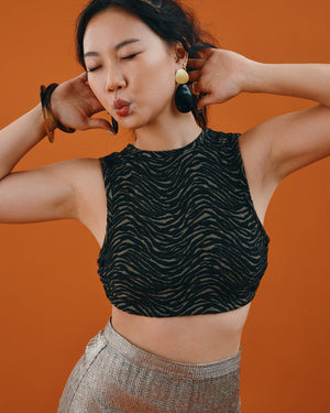 Keep it effortlessly cool in this ribbed crop top featuring a sleek high neck and daring open back with tie straps. Soft, stretchy, and oh-so-flattering — it’s the perfect mix of casual comfort and bold style.