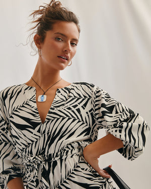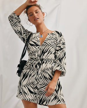 This gorgeous dress features a knee length design with a deep v-neck cut. Buttons for a touch of dainty design and three-quarter length sleeves make for a versatile outfit.
