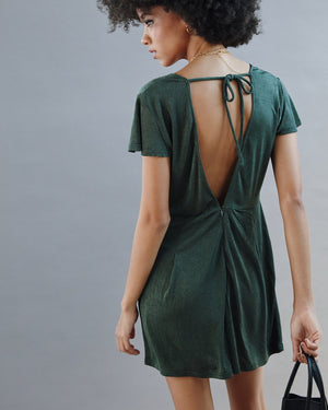 This short jumpsuit brings main character energy with its daring plunging V-neck in front and back — because why be subtle? The soft drape and back zipper keep it effortless and flattering, perfect for turning heads from brunch to the dance floor.