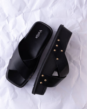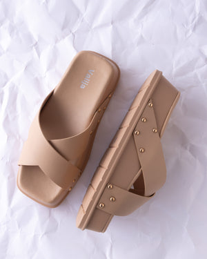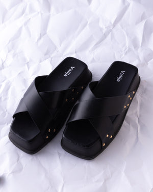 Comfort meets cool in these flatform sandals, featuring cushioned soles, criss-cross straps, and chic stud details for extra edge. Easy to slip on and effortlessly stylish, they’re your go-to pair for all-day wear with a fashion-forward lift.