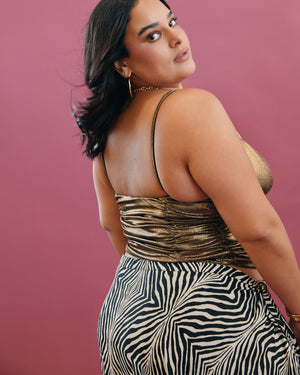 This sexy top brings instant main-character energy with its metallic sheen, ruched fit, and flirty front cutout that demands the spotlight. Throw it on and watch every room turn into your personal runway.