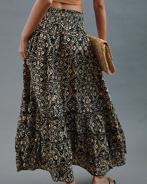 This frilled maxi skirt brings all the drama with a flowy asymmetric hem and dreamy layered frills; it practically dances for you. Pair it with a simple crop top and sandals to look effortlessly boho-chic from brunch to beach walks.
