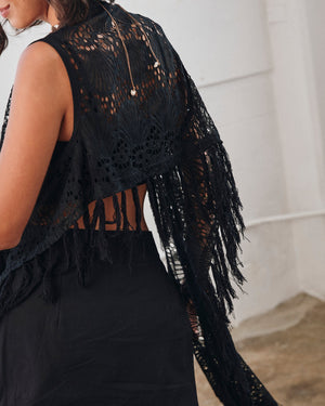 Turn up the edge with this wrap-style vest top, featuring a flattering silhouette, eyelet design, and perfectly undone distressed fringe details. Bold, breezy, and full of attitude, it’s the ultimate statement piece for effortless cool-girl vibes.