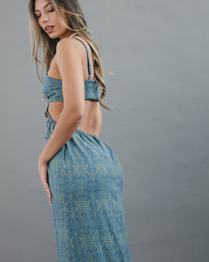 Turn heads in this maxi dress, featuring a plunging twisted V-neck and delicate spaghetti straps. With sexy cutouts and a flirty frilled hem, it’s the perfect blend of bold and feminine.