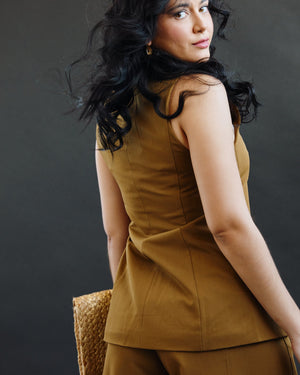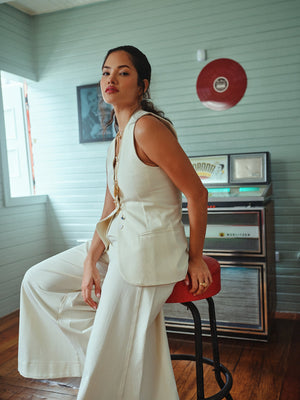 This crisp vest top brings instant polish with its tailored buttons and clean, structured lines — effortlessly chic without even trying. Pair it with anything from denim to embroidery and watch your outfit go from simple to standout in a snap.