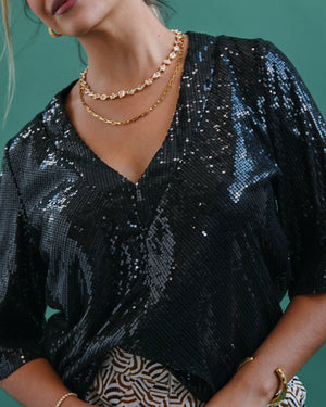 Shimmer like the main character in this relaxed, shimmering top that catches every light (and every compliment). Dress it up, dress it down — either way, you’re bringing the sparkle.