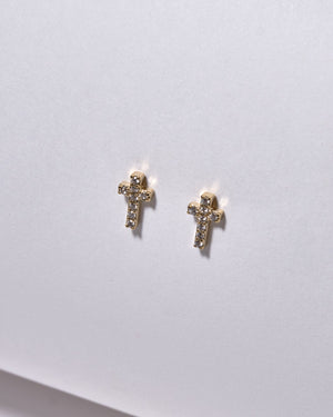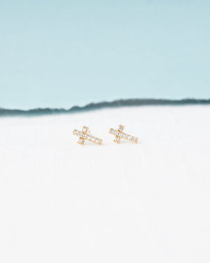 Tiny sparkling post earrings in a classic cross design composed of sparkling stones.
