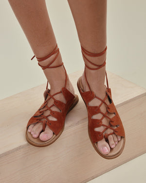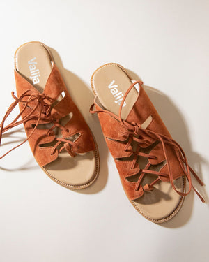 These suede leather slip on sandals offer a strap up design. Gladiator in style, these brown beauties are the perfect boho statement.