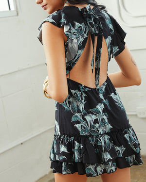 This vibrant mini dress brings instant sunshine with its flirty ruffle sleeves and twirl-worthy tiered hem. The sexy open-back design tied with a sweet bow adds the perfect touch of charm for any day that calls for fun and effortless style.