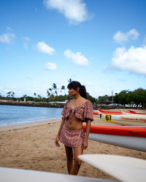 Flirty and functional, this mini skort combines a high-rise waist with playful side tie straps for an equal parts chic and effortless look. With an easy fit and convenient back zipper, it’s your go-to piece for anything from coffee runs to sunset strolls!