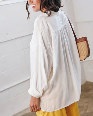 Effortlessly cool and endlessly versatile, this relaxed button-down shirt top features a soft textured fabric, classic collar, and an easygoing silhouette. Perfect for tucking in, layering, or wearing loose, it’s your new go-to for laid-back style with a polished twist.