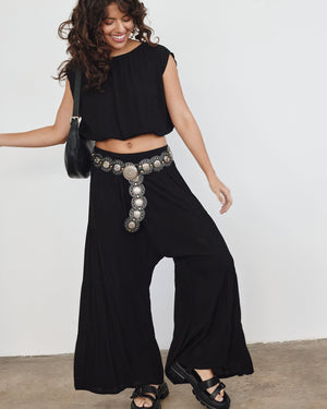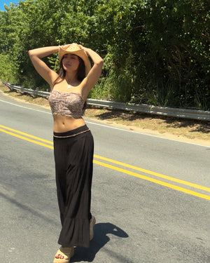 Step up your style game with these breezy casual pants, featuring a high-rise waist and a wide waistband that hugs just right. With flared legs layered in frills, they are the perfect blend of flowy and fabulous — basically made for twirling through your day!